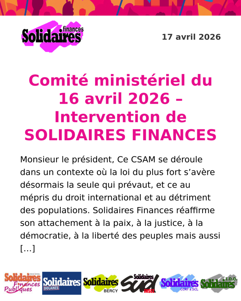 Comité ministériel du 16 avril 2026 – Intervention de SOLIDAIRES FINANCES